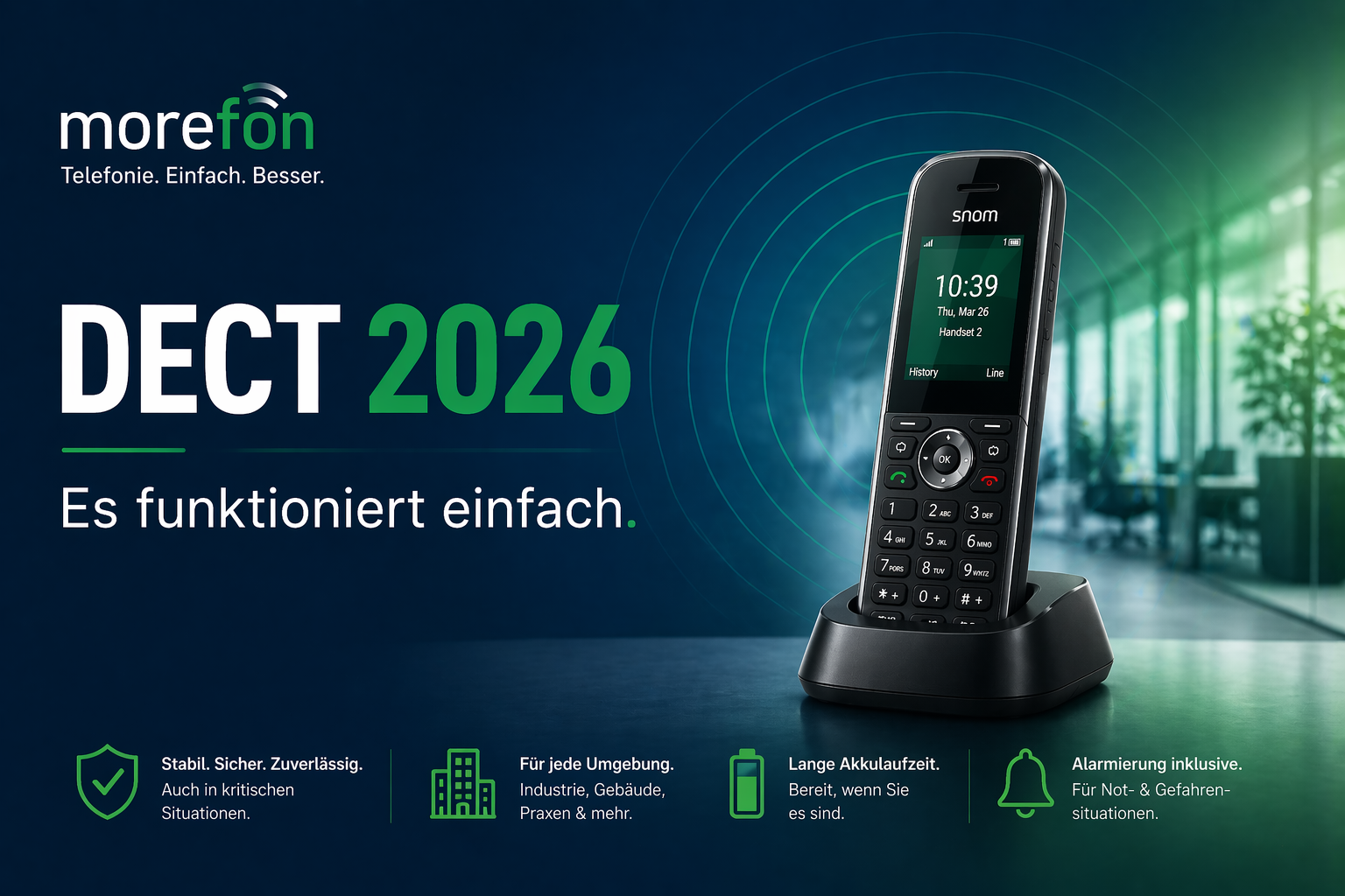 Wenn Smartphones, WLAN-Infrastruktur oder Mobilfunkverbindungen nicht von Morefon bereitgestellt und betreut werden, können wir keine Garantie für durchgehende Erreichbarkeit, Push-Benachrichtigungen, Gesprächsqualität oder verzögerungsfreien Verbindungsaufbau übernehmen. Für geschäftskritische Erreichbarkeit empfehlen wir daher weiterhin einen stationären Telefonapparat oder DECT Schnurlostelefone.